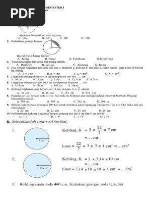 Soal luas dan keliling lingkaran ini terdiri dari 20 soal pilihan ganda dan 10 soal uraian.