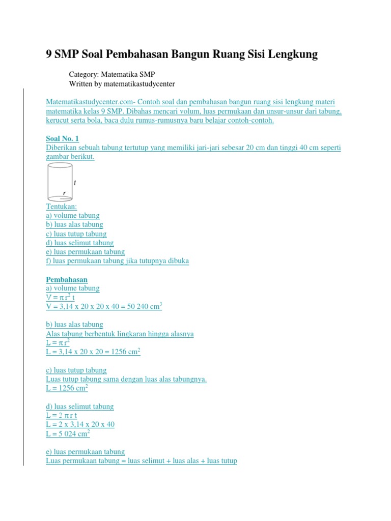 Contoh Soal Luas Permukaan Dan Volume Tabung Wl1pwv3yk9lj