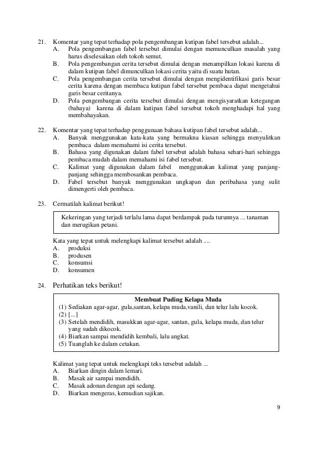 Contoh Soal Un Bahasa Indonesia Smp Pk1 Dan Pembahasannya