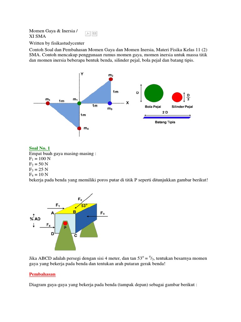 Contoh soal momen gaya dan kopel pembahasan. Contoh soal dan pembahasan momen gaya dan momen inersia materi fisika kelas 11 2 smacontoh mencakup penggunaan rumus momen gaya momen inersia untuk massa titik dan momen inersia beberapa bentuk benda silinder pejal bola pejal dan batang tipis.