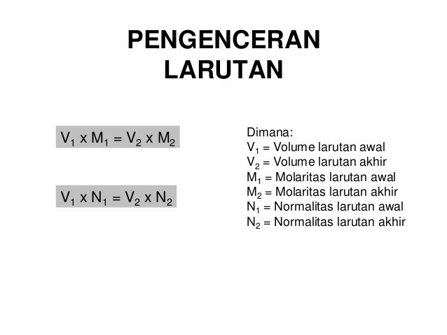 M1 v1 m2 v2 2. Bagi temen temen kimiamipa pasti sudah tidak asing lagi dengan berbagai jenis larutan yang sering dipakai di lab. M 1 2m v 1. Pengenceran larutan yaitu memperkecil konsentrasi larutan dengan jalan menambahkan sejumlah tertentu pelarut. Cara mengencerkan larutan dan rumus pengenceran larutan adalah bahan kimia yang terdiri dari zat terlarut dan pelarutlarutan banyak kita gunakan di laboratorium kimia. Berapakah volume dari larutan h 2 so 4 2 m yang dibutuhkan untuk membuat larutan 200 ml h 2 so 4 05 m.