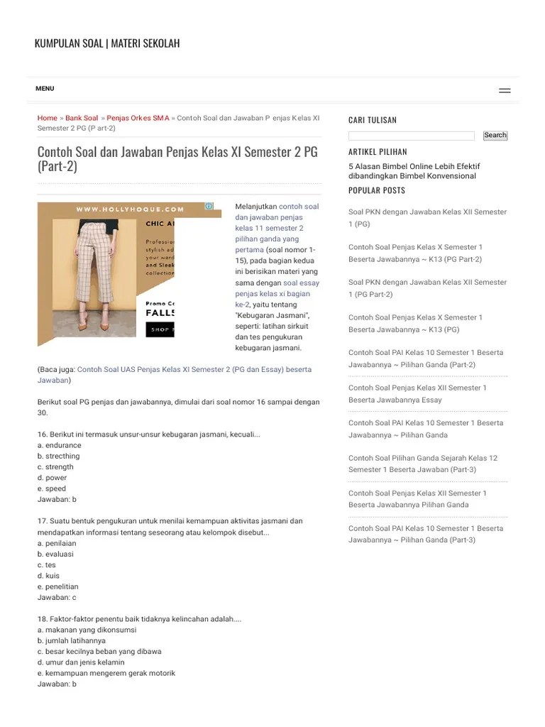Berikut contoh soal pg penjas kelas 10 semester ganjil dengan. Melakukan awalan dengan langkah ancang ancang lebar merupakan salah satu cara melakukan. Contoh soal pilihan ganda. Tindakan menghadang bola atau menghlang halangi smasher yang sedang melakukan smash disebut a. Posted in pkn tagged contoh soal pkn kelas 10 bab 1 beserta jawabannya contoh soal pkn kelas 10 bab 2 beserta jawabannya. Contoh soal uts penjas kelas xii semester 1 beserta jawabannya pg dan essay.
