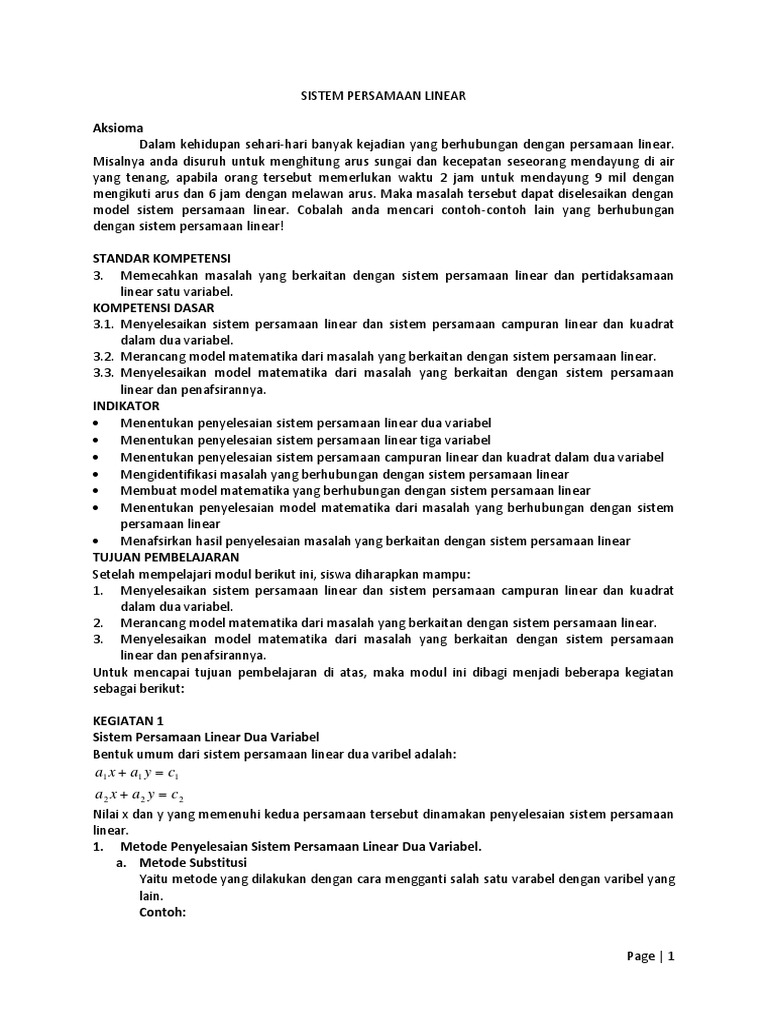 Contoh soal persamaan linier. Sistem persamaannya bisa terdiri dari satu variabel dua variabel atau lebih. Pada contoh diatas x a b adalah variable peubah yang dapat diganti dengan sembarang bilangan yang. Cari persamaan kedua garis untuk dapat menentukan titik potongnya. 1 luas daerah parkir 1760 m 2. Lalu subtitusikan persamaan 1 ke 2. Dalam bahasan ini kita hanya membahas sistem persamaan linear dengan dua dan tiga variabel.