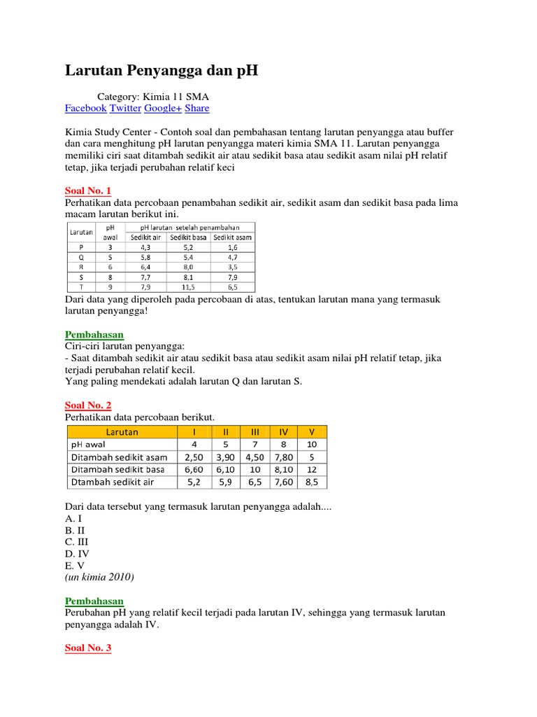 60 Soal Larutan Penyangga Pilihan Ganda Dan Jawaban