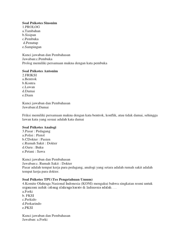 Contoh soal psikotes rumah sakit dan jawabannya. Berikut ini adalah kumpulan berkas file guru tentang contoh soal psikotes rumah sakit dan jawabannya pd yang bisa anda unduh secara gratis dengan menekan tombol download. Contoh soal psikotes rumah sakit pd. Download contoh soal psikotes 2019 matematika gambar polri bank karayawan deret angka pdf cpns sma online dan jawabannya beserta pembahasannya lengkap. Contoh soal psikotes ujian seleksi kemenkes ri terbaru 2018 dan jawabannya soal psikotes sinonim 1prolog atambahan bsisipan cpembuka dpenutup esampingan kunci jawaban dan pembahasan jawabancpembuka prolog memiliki persamaan makna dengan kata pembuka soal psikotes antonim 2friksi abentrok bkontra clawan ddamai ediam kunci jawaban. Sekalipun anda belum pernah mengikuti psikotes sebelumnya jika anda mempersiapkan diri dengan mempelajari contoh soal psikotes atau minimal mengetahui seperti apa karakter soal soal yang akan anda hadapi nanti. Dapatkan contoh soal psikotest dan jawabannya lengkap kumpulan soal soal psikotes yang bisa membantu untuk persiapan test masuk kerja bank ataupun test masuk sekolah.