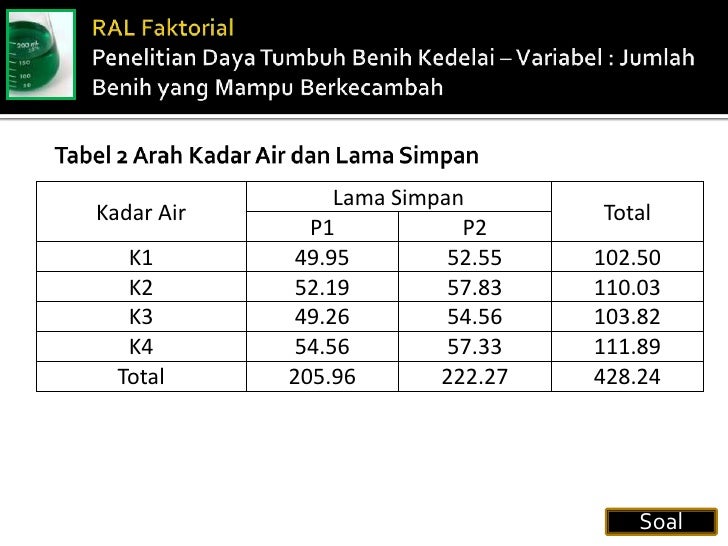 Contoh soal rancangan acak lengkap. Berikut ini adalah hasil pengujian estrogen beberapa larutan yang telah mengalami penanganan tertentu. Rancangan acak lengkap dengan ulangan sama pada contoh kasus ini digunakan kembali contoh kasus yang sama dengan contoh pada penguraian keragaman total. Rancangan acak kelompok lengkap merupakan rancangan acak kelompok dengan semua perlakuan dicobakan pada setiap kelompok yang ada. Contoh soal rancangan acak lengkap ral dengan spss agar lebih memudahkan dalam melakukan dan mamahami proses analisis percobaan bergalat tunggal rancangan acak lengkap ral dengan peng. Data pertumbuhan berikut dalam sentimeter dicatat dari tanaman yang hidup. Rancangan ini dipergunakan jika ingin mempelajari pengaruh beberapa perlakuan dengan sejumlah ulangan untuk menjadi satuan satuan percobaan.