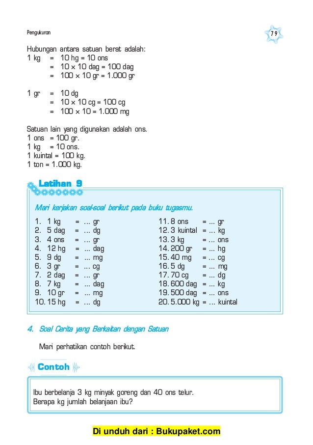 Contoh soal satuan berat. Soal matematika tentang satuan jarak lengkap dengan kunci dan pembahasan satuan berat yang kita pelajari pada bagian ini adalah kg hg ons dan g gram. Contoh soal cerita matematika kelas 4 sd materi satuan berat. Satuan berat yang sering kita gunaan sehari hari adalah ons kwintal ton kilogram gram pound dan lbs. Dalam menyatakan berat terkadang ada banyak pilihan satuan. Posted in matematika tagged 1 ton berapa pon 1600 pon berapa kw 2kuintal berapa kg alat pengukur berat adalah besaran satuan dan konversi cara menghitung tangga satuan berat cara mudah menghafal ukuran berat contoh soal satuan berat dimensi gaya perpindahan adalah formula satuan berat fungsi timbangan warung gambar satuan berat. Soal matematika kelas 3 sd tentang satuan berat soal matematika kelas 3 sd tentang satuan berat bila kemarin kita sudah belajar tentang satuan jarak materi pelajaran matematika di tema 3 subtema 2 telah sampai pada pengukuran berat.