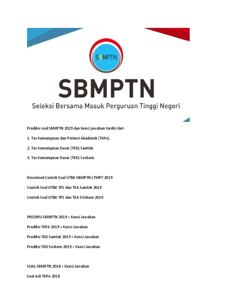 S bmptn 2019 merupakan salah satu jenis seleksi yang dilakukan oleh ptn secara bersama di bawah koordinasi panitia pusat dengan seleksi berdasarkan hasil ujian tertulis dalam bentuk cetak pbt. Artikel ini memberikan latihan soal sbmptn hots bahasa inggris dan pembahasan 2019 untuk mata pelajaran bahasa inggris squad walaupun masih belum ada keterangan pasti apakah mata pelajaran bahasa inggris akan masuk ke sbmptn 2019 mendatang tidak ada salahnya bukan kamu mempelajarinya agar lebih siap dalam menghadapi soal sbmptn hots. Bagi pendaftar sbmptn akan dipungut biaya pendaftaran yakni sebesar rp 200 ribu. Quipperian itulah contoh soal sbmptn 2019 soshum yang bisa kamu kerjakan sebagai tambahan wawasan. Soshum ips dan pembahasan ini diberikan kepada adik adik yang akan mengikuti ujian utbk 20192020 sebagai bahan latihan. Materi soal tka saintek terdiri dar.