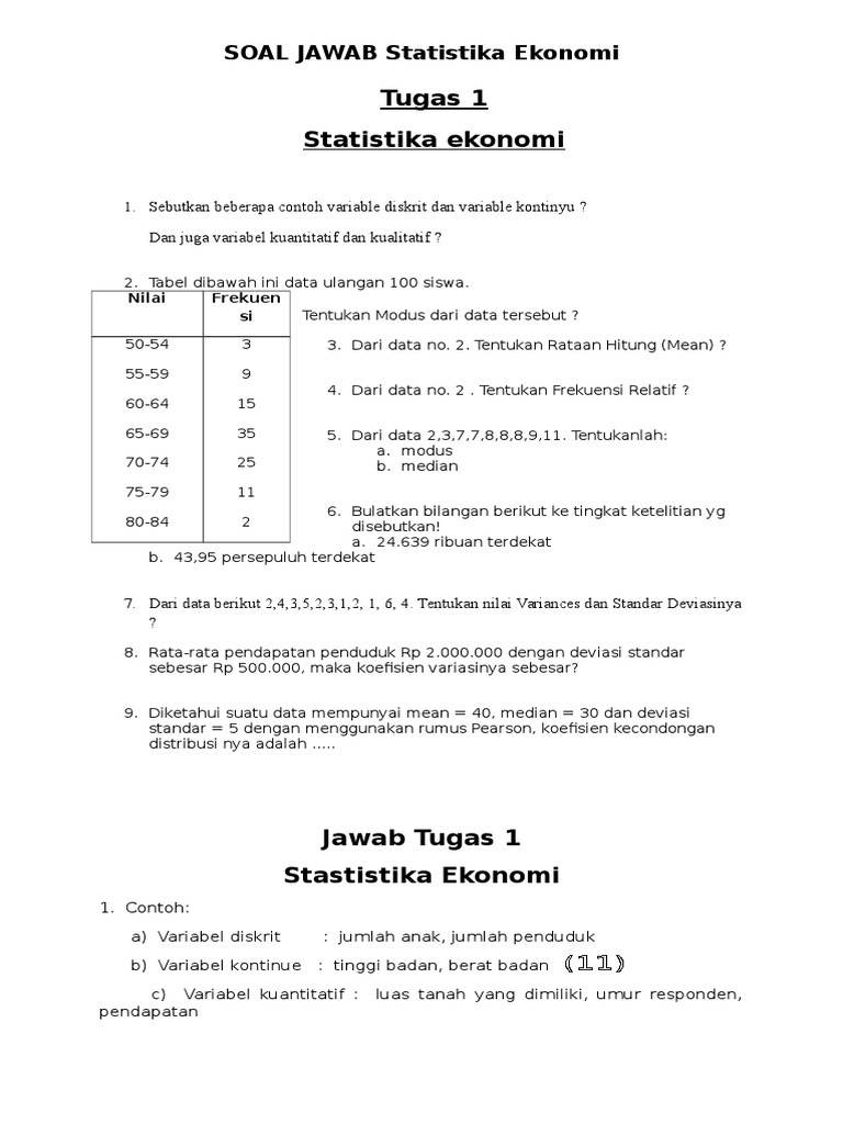 Pada mata kuliah statistik ekonomi tahun 2016 soal pertama bagian jawaban point a. Untuk membantu siswa belajar soal statistika kami merangkum 25 butir contoh soal dan penyelesaiannya lengkap simak berikut ini.
