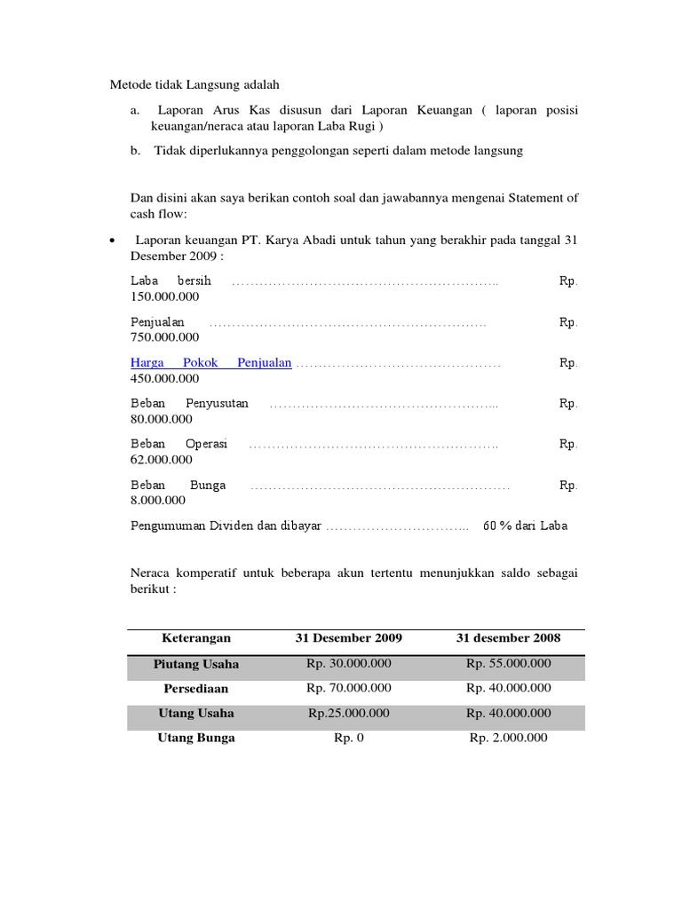 Contoh soal laporan arus kas contoh soal laporan keuangan perusahaan dagang contoh soal laporan laba rugi perusahaan jasa laporan arus kas metode langsung. Ia menunjukkan berapa uang masuk dan uang keluar. Laporan arus kas merupakan laporan keuangan yang berisi informasi aliran kas masuk dan aliran kas keluar dari suatu perusahaan selama periode tertentu. Berikut saya berikan contoh soal kasus laporan keuangan. Semoga tulisan ini bermanfaat dan terimakasih sudah membaca tulisan ini ya. Laporan arus kas metode langsung dan tidak langsung.