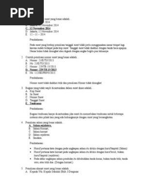 Pembuka surat soal 20 bahasa isi surat pribadi yang paling santun adalah. Melalui soal soal ini diharap murid dapat memahami penggunaan dari beberapa jenis tanda baca dan ejaan yang benar dalam sebuah kalimat. Contoh surat dinas pengertian dari surat dinas adalah surat resmi yang dibuat oleh instansi atau lembaga untuk keperluan dinas baik pemerintah maupun lembaga swastaisi dari surat dinas adalah permasalahan kedinasan seperti pemberitahuan suatu izin penugasan menyampaikan pengumuman permohonan dan lain lain. Surat dinas merupakan surat yang dibuat oleh lembaga kedinasan dan ditujukan kepada lembaga yang lain ataupun perseorangan. Contoh soal melengkapi surat dinassurat resmi contoh soal tentang surat dinas berbentuk essay dan jawabannya berikut ini adalah contoh soal tentang menulis surat dinas. Surat dinas pada umumnya menggunakan ragam bahasa resmiseperti halnya surat pribadi isi surat dinas terdiri atas pembuka isi pokok dan penutup.