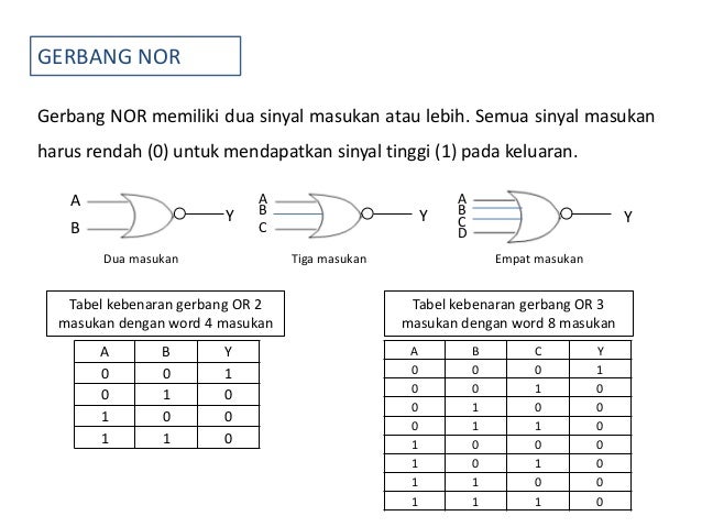 Jika hasil akhir ialah benar semua dilambangkan dengan b t atau 1 maka disebut tautologiakan tetapi jika salah semua s f atau 0 disebut kontradiksipremis hasil akhirnya gabungan benar dan salah disebut. Ada 2 macam kuantor yaitu. Tabel kebenaran truth table gerbang logika adalah tabel yang dipergunakan untuk menganalisa suatu nilai kebenaran umumnya terdiri dari input dan output sedangkan gerbang logika logic gate adalah dasar dari pembentuk sistem elektronika digital yang berguna dalam mengubah satu atau beberapa masukan input menjadi sebuah isyarat atau sinyal keluaran output. Berdasarkan tabel diatas maka dapat kita ambil simpulkan bahwa sifat dari disjungsi ialah bernilai salah jika kedua pernyataan penyusun dari peryataan majemuk keduanya bernilai salah. Tabel kebenaran pada contoh tersebut di atas merupakan tabel kebenaran yang menggunakan format diperpendek.