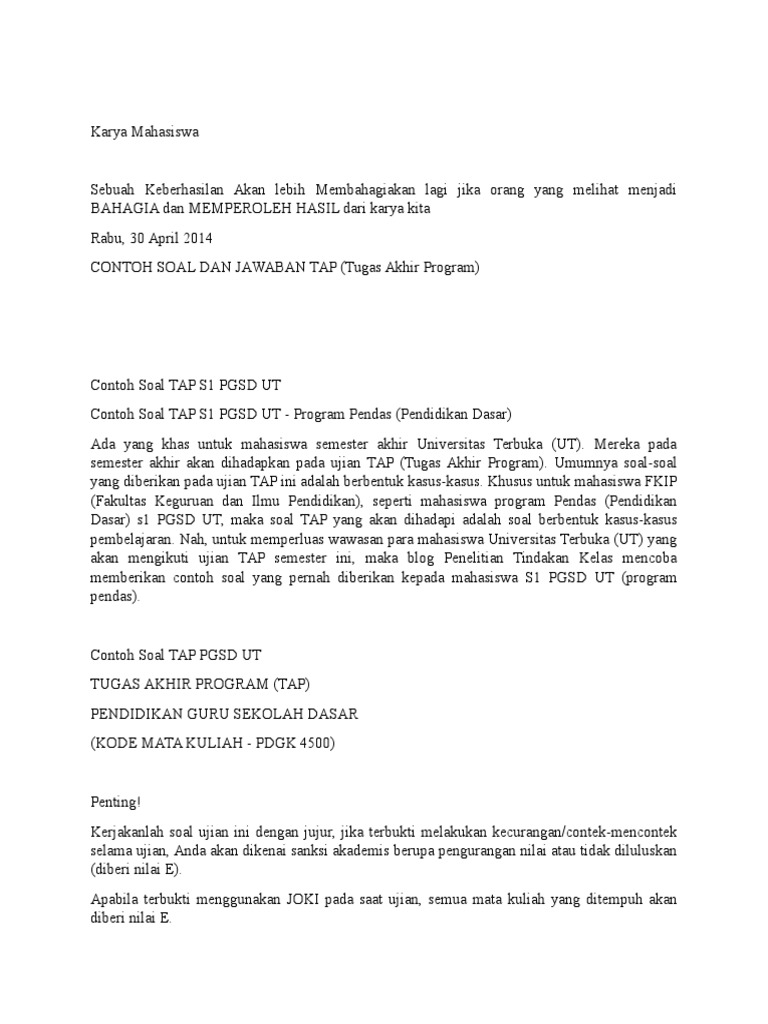 Contoh soal tap beserta jawabannya. Soal uas ipa smk beserta kunci jawabannya berikut ini adalah kisi kisi soal pretest ppg 2018 yang merupakan kumpulan file dari berbagi sumber kisi kisippg tentang soal uas ipa smk beserta kunci jawabannya yang bisa bapakibu gunakan dan diunduh secara gratis dengan menekan tombol download biru dibawah ini. Baca dulu semua jawaban baru mulai berpikir dan memutuskan jawabannya. Semoga membantu yah oya ini aku dapat dari kakak kelasku namanya ka halima untuk soal yang lain siapa tau sobat shantycr7 juga butuh bisa dilihat disini contoh soal. Download kisi kisi dan prediksi serta contoh soal tkp 2020 terbaru serta dengan jawabannya. Sebelum ini pada postingan kami lalu kami juga telah berbagi soal ujian ut pgsd pdgk4502 pengembangan kurikulum dan pembelajaran di sd. Soal revisi sd smp sma.