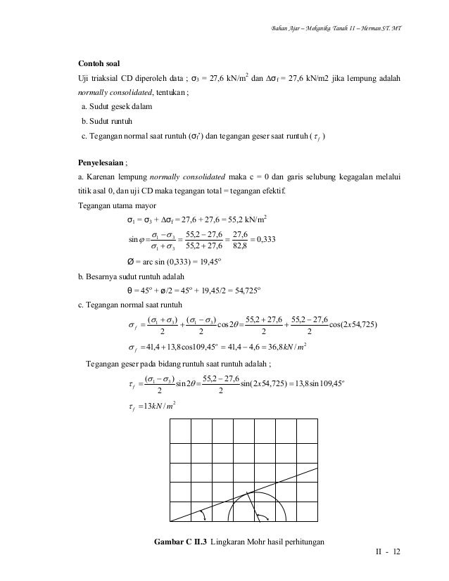 Hasil hasil yang diperoleh dalam uji triaksial uu tak terdrainase pada 3 contoh benda uji pada saat kegagalan diperoleh hasil kurva tegangan regangan tekanan sel serta tegangan deviator saat runtuh sebagai berikut ini. P 8 kw sf 30 hz 55000 knm2. Topik 6 minggu ke 7 8 10 11. Topik 7 minggu ke 12. Tegangan normal dan tegangan geser. 50 kn 45 kn.