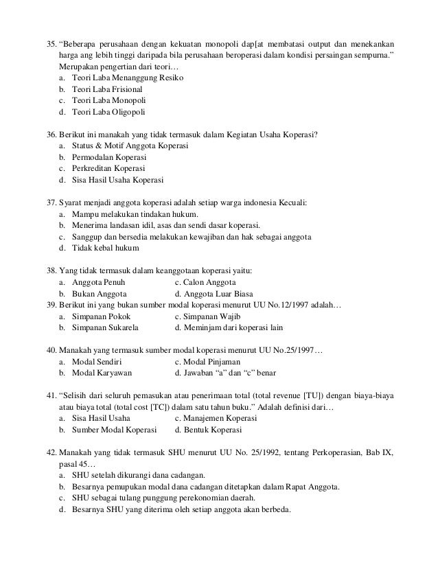 Contoh soal tentang koperasi dan jawabannya. Nah itulah beberapa contoh soal terkait materi koperasi simpan pinjam. Semoga dapat bermanfaat ya teman teman mohon maaf apabila ada kesalahan. Pancasila dan uud 1945 c. Diketahui sisa hasil usaha shu koperasi simpan pinjam perguruan bangau hitam beroleh rp. Sebelumnya untuk soal soal ekonomi kelas 10 ktsp telah admin bagikan pada tulisan contoh soal ekonomi beserta jawaban kelas x semester 2 pilihan gandadan untuk tulisan yang sedang anda baca merupakan soal ekonomi khusus kurikulum 2013 dengan materi yang pertama berisikan tentang lembaga jasa keuangan. Melanjutkan contoh soal pg ekonomi kelas x semester 2 kurikulum 2013 beserta jawabannya bagian ke 7 soal nomor 61 70 bagian ke 8 berisikan materi yang sama dengan soal dimulai dari nomor 71.