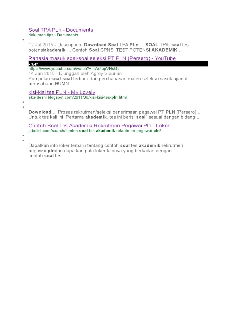 Di bawah ini adalah sejumlah contoh soal tes psikotes pln yang bisa anda jadikan sebagai bahan referensi untuk belajar mempersiapkan diri untuk ikut pelaksanaan tes psikotes pln. Tahun 2018 pt pln persero membuka lowongan kerja sebesar besarnya. Soal satu soal kadang terkait dengan soal sebelumya. Cara mengerjakan tes soal psikotes pln. So jadi itu adalah contoh soal tes akademik masuk pln yang bisa saya share. Contoh soal tes akademik masuk pln tes akademik atau tpa adalah tes yang dapat digunakan untuk mengungkap apa yang telah dicapai seseorang peserta secara intelektual.