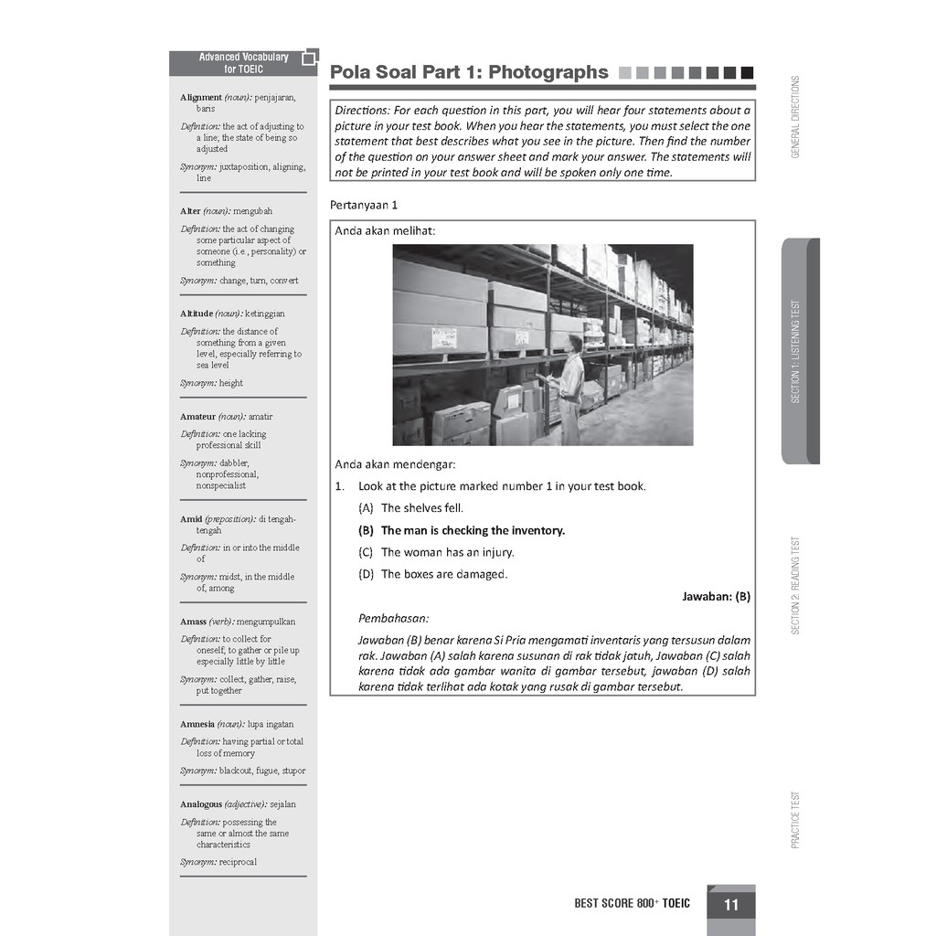 Listening pada sesi ini anda akan berkesempatan untuk menunjukkan seberapa baik anda menguasai. Contoh soal disadur dari toeic examinee handbook educational testing service contoh contoh pertanyaan berikut ini tidak merefleksikan gambaran kesulitan yang sesungguhnya yang akan ditemukan pada saat tes toeic yang sesungguhnya. Jika kalian akan mengikuti test toefl dalam waktu dekat ini maka tidak salah jika kalian membaca artikel ini sampai tuntas sebagai bahan referensi kalian karena saya akan memberikan 50 contoh soal toefl reading comprehension lengkap dengan kunci jawaban dan pembahasan. Mengikuti test toeic dalah satu cara untuk mengetahui kemampuan berkomunikasi dengan bahasa inggris. If the clientdissatisfied please have him write a letter a. Tes toeic dapat mengukur kemampuan berbahasa inggris untuk individu yang dalam kesehariannya bekerja di lingkungan internasional.
