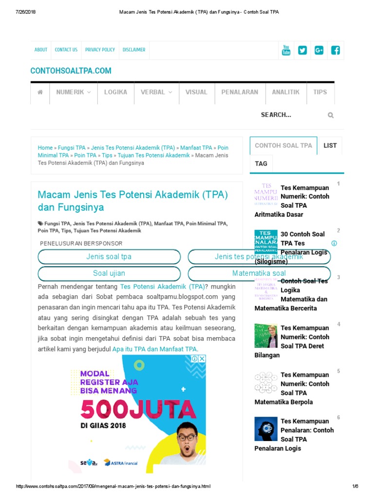Contoh soal test potensi akademik tpa terbaru lengkap disertai dengan jawaban dan pembahasannya numerik logika verbal visual tips dan trik contoh soal tpa test potensi akademik. Langsung klik saja untuk mendownload.