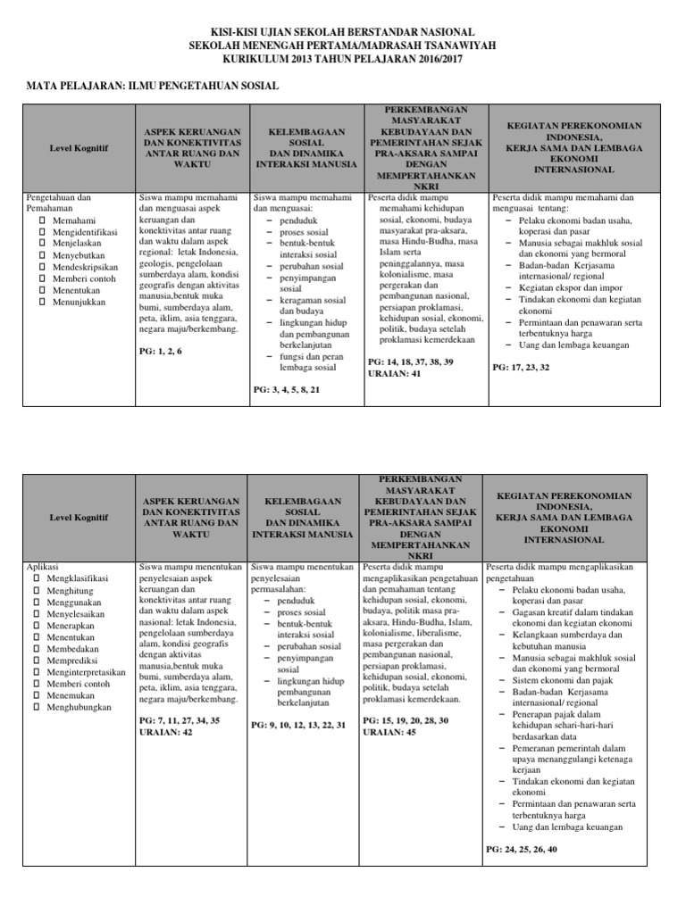 Usbn smp terdiri dari 10 mata pelajaran yang terdiri dari matematika bahasa indonesia bahasa inggris pendidikan agama islam ilmu pengetahuan alam ipa ilmu pengetahuan sosial ips tik pjok prakarya seni budaya dll. Tahun ini adalah tahun kedua usbn jenjang smpmts dilaksanakan untuk itu sebagai bahan latihan siswa disini kami akan bagikan soal usbn ips serta kunci jawabannya. Kumpulan soal usbn smp tahun 2016 pkn. Diharapkan soal usbn ips smp 2017 beserta kunci jawaban ini merupakan salah referensi yang baik dan benar sesuai harapan anda bisa digunakan untuk bank soal contoh soal download kelas 9 smp ujian usbn dengan demikian file tersebut bisa memenuhi dan mengakhiri pencarian. Selain empat mata pelajaran yaitu matematika ipa bahasa indonesia dan bahasa inggris mulai tahun ajaran 20162017 kemarin juga diselenggarakan usbn untuk tiga mata pelajaran yaitu ips pkn dan pend agama. Dalam rangka memperisapkan siswa menghadapi pelaksanaan usbn smp tahun 2017 ini ada baiknya kita kenalkan siswa dengan soal latihan usbn ips 2017 dan kisi kisi usbn ips 2017.