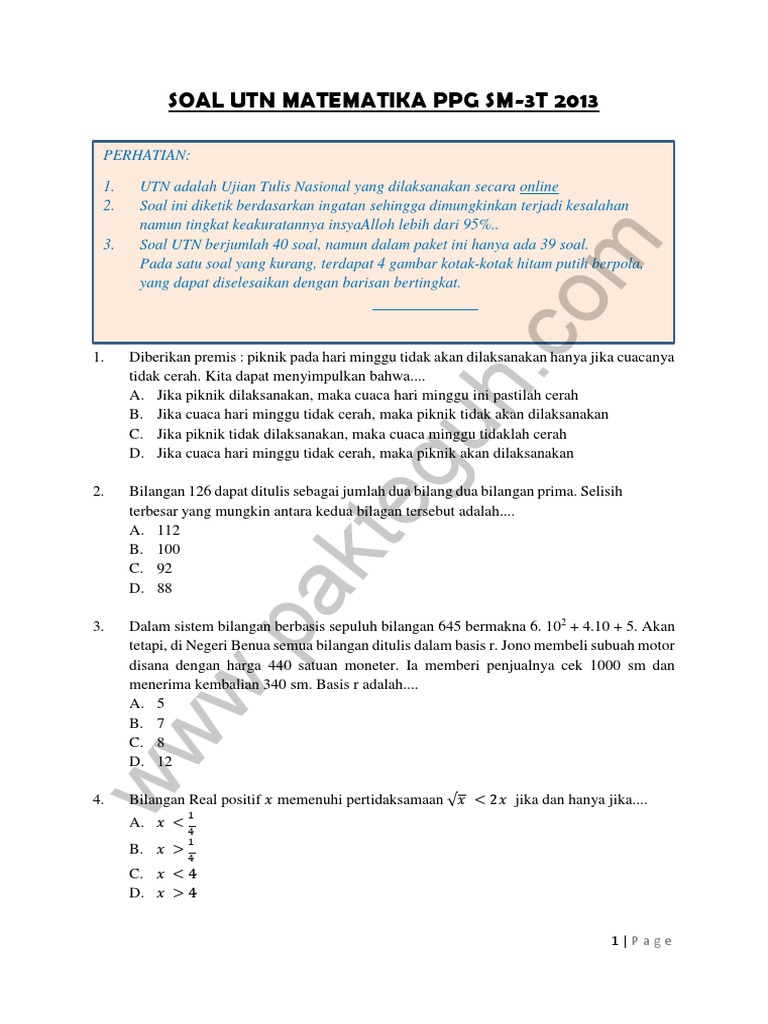 Plpg dan ujian tulis nasional yang sering disingkat dengan utn. Soal soal ini mencakup materi pedagogik dan profesional dilengkapi dengan kunci jawaban serta pembahasan sehingga memudahkan dalam proses pendalaman soal dan materi. Ini hanyalah contoh soal prediksi soal utn plpg guru sd 2017. Soal utn plpg 2016. Soal utn plpg 2016.