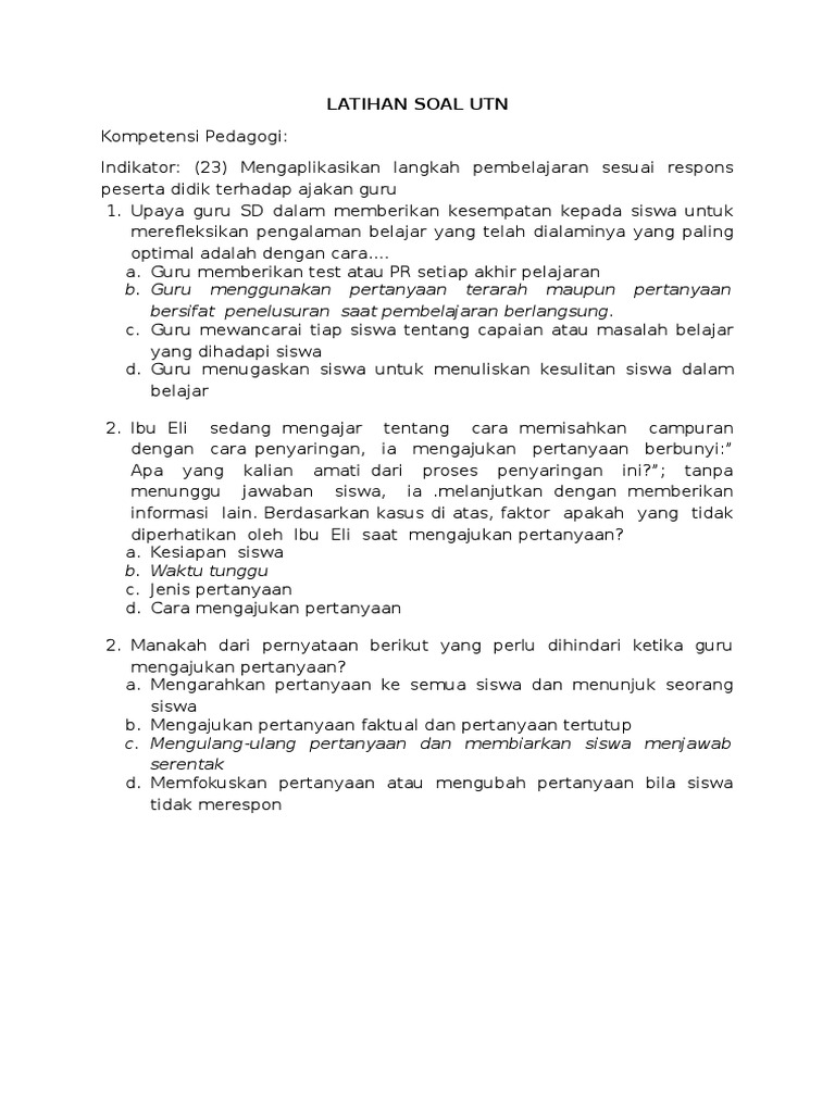 Contoh soal utn plpg 2016. Download semua soal utn. Berikut ini kami bagikan link download kumpulan soal soal ujian tulis nasional utn untuk plpg tahun 2017 link terkait dengan kisi kisi soal utn plpg 2017 contoh soal utn plpg 2017 soal soal utn plpg 2017 soal utn plpg sd 2017 ceknilaiutnplpg 2017 kisi kisi utn 2017 kisi kisi utn 2017 dan update terbaru akan kami rangkum dalam posting ini karena itu tetap ikuti perkembangan terbaru. Soal soal latihan ujian tulis nasional utn ini kami bagikan sebagai salah satu persiapan yang dapat digunakan dalam pelaksanaan utn plpg untuk proses sertifikasi guru tahun 2017. Utn dilaksanakan secara daring dalam jejaringonline dan diikuti oleh peserta yang telah lulus plpg. 50 contoh soal pedagogik plpgukg 2016 contoh soal pedagogik barangkali penting untuk dijadikan sebagai bahan belajar bagi bapak ibu guru yang akan ikut uji kompetensi guru. Berdasarkan buku panduan teknis pelaksanaan sertifikasi guru yang dibuat oleh konsorsium penyelengara sertifikasi guru tahun 2016 peserta dinyatakan lulus sertifikasi guru jika memenuhi dua syarat kelulusan yaitu.
