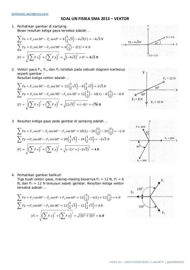 Contoh soal vektor fisika. Teknik teknik dasar analisis vektor yang meliputi penguraian vektor dalam komponen sumbu x dan sumbu y resultan vektor dengan metode jajar genjang resultan vektor dengan uraian komponen vektor dan resultan vektor dengan metode poligon. Contoh besaran vektor adalah perpindahan kecepatan gaya momentum medan listrik dll. Contoh soal gelombang berjalan beserta pembahasannya 1404 views. Besaran 5 dinamika gerak lurus 1 dinamika gerak rotasi 3 filsafat 2 fisika 101 4 gaya gravitasi 1 getaran dan gelombang 3 impuls dan momentum 1 kinematika 6 penurunan persamaan 4 pertanyaan dasar fisika 1 praktikum elektronika digital 17 praktikum fisika 32 praktikum kimia 15 praktikum pemrograman komputer 10 sbmptn fisika 9 un fisika sma 13 un fisika sma. Contoh soal dan pembahasan fisika sma kelas 10 x materi vektor. Contoh soal dan pembahasan fisika sma kelas 10 x materi vektor.