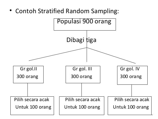 Contoh stratified random sampling. Untuk itu dilakukan sutvey untuk mengestimate jumlah rata rata dalam jam per minggu dari rumahtangga rumahtangga rt di suatu wilayah yang menonton tv. Stratified random sampling adalah suatu teknik pengambilan sampel dengan memperhatikan suatu tingkatan strata pada elemen populasi. Namun ketidakproporsionalan penentuan sample didasarkan pada pertimbangan jika anggota populasi berstrata namun kurang proporsional pembagiannya. Contoh simple random sampling. Setelah populasi terbagi ke dalam beberapa strata random sampling dilakukan pada masing masing strata atau tingkatan. Bedanya peneliti membagi populasi ke dalam beberapa strata atau tingkatan.
