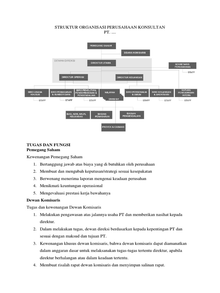 Contoh struktur organisasi perusahaan penjelasan masing masing tugasnya. Struktur organisasi dalam proyek konstruksi.
