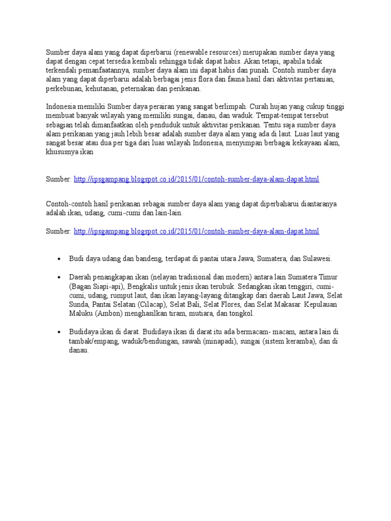 Laut adalah salah satu bagian terbesar dari bumi. Pemanfaatan sumber daya laut dengan menjaga aspek keseimbangan tentunya bagian dari kepedulian kita ikut menjaga keutuhan biota laut. Pemanfaatan sumber daya alam. Posting pada geografi ditag 10 contoh sumber daya alam yang dapat diperbaharui 5 contoh sumber daya alam biotik dan abiotik apa kegunaan peta persebaran sumber daya alam apa yang dimaksud dengan sumber daya alam bagaimana cara melestarikan sumber daya alam bagaimana cara mengolah dan memelihara sda bentuk sumber daya alam bentuk sumber. Sumber daya alam dan pertumbuhan ekonomi. Sumber daya alam yang dapat diperbaharui adalah sumber daya alam yang mampu meperbaharui diri sendiri atau memiliki kuantitas yang tidak terhingga sehingga dapat di pakai terus menerus.