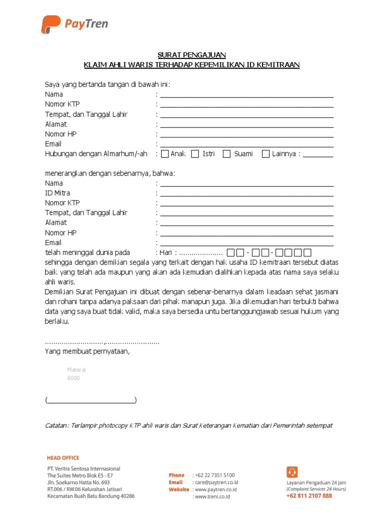 Contoh format ini saya ambil dari contoh pada pengambilan uang pensiunan di bank untuk almarhum ayah admin. Contoh surat keterangan ahli waris ini tentunya akan menjelaskan tentang siapa saja ahli waris dari seseorang pewaris sehingga harta peninggalan dari pewaris menjadi jelas akan jatuh ke tangan siapa. Namun jikakendalnya demikian coba untuk berkonsultasi ke pihak kantor notaris apakah bisa menggunakan surat kematian. Sedangkan surat resmi penulisannya harus mengikuti kaedah tatabahasa yang disempurnakan atau biasa disebut. Surat kematian dari rumah sakit jika meninggal di rumah sakit 3. Berikut ini admin akan berbagi contoh format penulisan surat kuasa ahli waris bank.