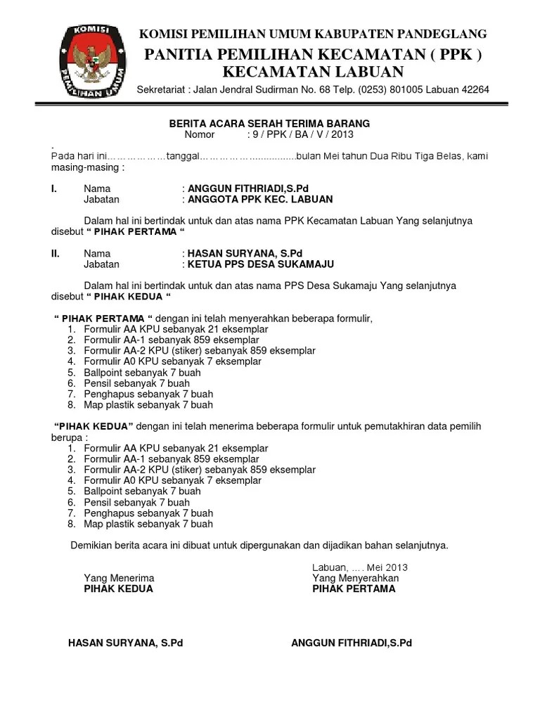 Mengetahui berita acara memang sangat penting terutama bagi anda yang berhubugan dengan banyak orang atau terkait pekerjaan. Oleh karena itu janganlah bimbang dalam membuat berita acara serah terima barang apabila terdapat pemindahan barang. 106 solo jawa tengah. N a m a.