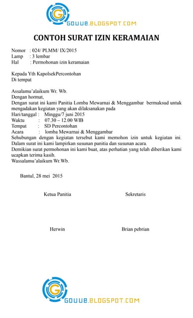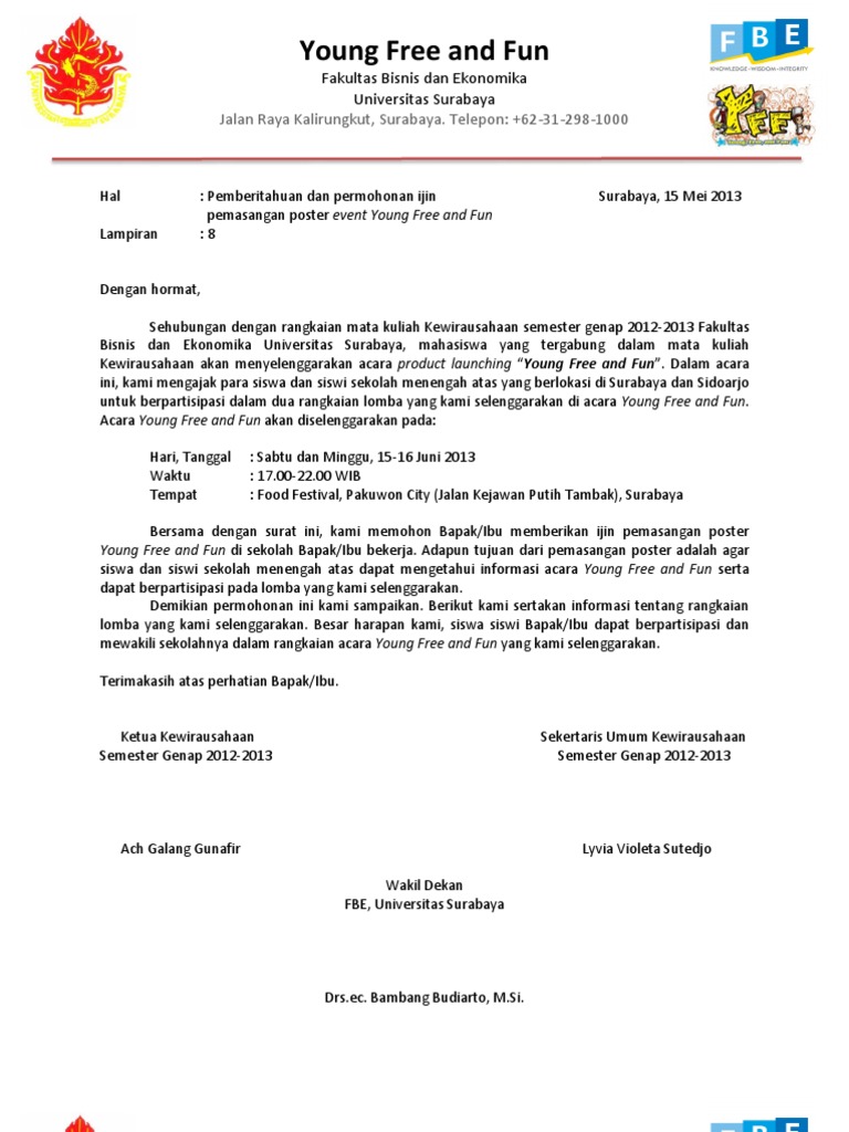 Yayasan pondok pesantren miftahussholihin. Tanggal 20 agustus 2012 perihal. Sehubungan dengan akan diadakannya sambut maba ub 2013 dengan tema ikhlas bersaudara karena kita brawijaya maka kami selaku panitia memohon izin pemasangan spanduk ini. 01pyppmii2010 pekalongan 30 april 2019 lampiran. Nah berikut ini bisa kamu kutip contoh surat ijin pemasangan baliho untuk sebuah acara pengajian. Satu lembar perihal.