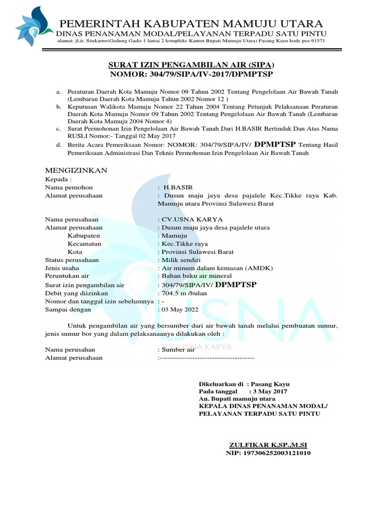 Apakah anda puas dengan penjelasan pelayanan publik surat izin pengusahaan air tanah sipa baru tidak puas. Surat izin pengeboran dan penggalian air tanah. Contoh surat izin pengusahaan air tanah sipa yang diterbitkan oleh dpmptsp provinsi banten. Admin blog dapatkan contoh 2019 juga mengumpulkan gambar gambar lainnya terkait contoh surat permohonan izin pengeboran air tanah dibawah ini. Berikut informasi sepenuhnya tentang contoh surat permohonan izin pengeboran air tanah. Contoh permohonan surat keterangan ketidak tersediaan air bersih air minum ke pdam surat kuasa.