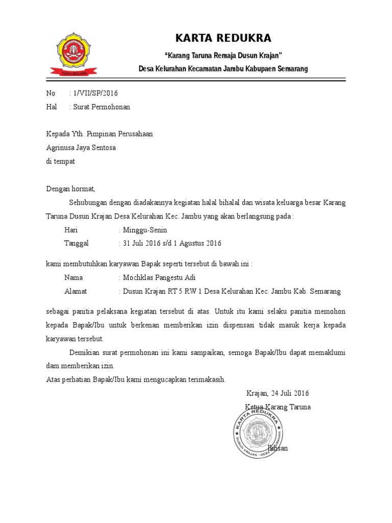 Kepada yang terhormat kepala hrd pt. Dengan hormat saya yang bertanda tangan di bawah ini. Contoh surat izin tidak masuk kerja bagi kita yang bekerja pada sebuah perusahaan instansi pendidikan atau mungkin pemerintahan banyak hal yang diatur oleh suatu tata tertib di tempat tersebutdan kita sebagai seorang pekerja atau karyawan mau tidak mau memang harus mematuhi peraturan yang ada. Contoh surat izin tidak masuk kerja yang kita bahas di sini merupakan suatu surat yang dibuat oleh pegawai atau karyawan kepada perusahaan yang ditujukan kepada pimpinan perusahaan atau kepala hrd untuk meminta izin karena tidak dapat masuk kerja dikarenakan alasan tertentu. Sugeng tri admodjo alamat. 21 contoh surat izin tidak masuk kerja lengkap.