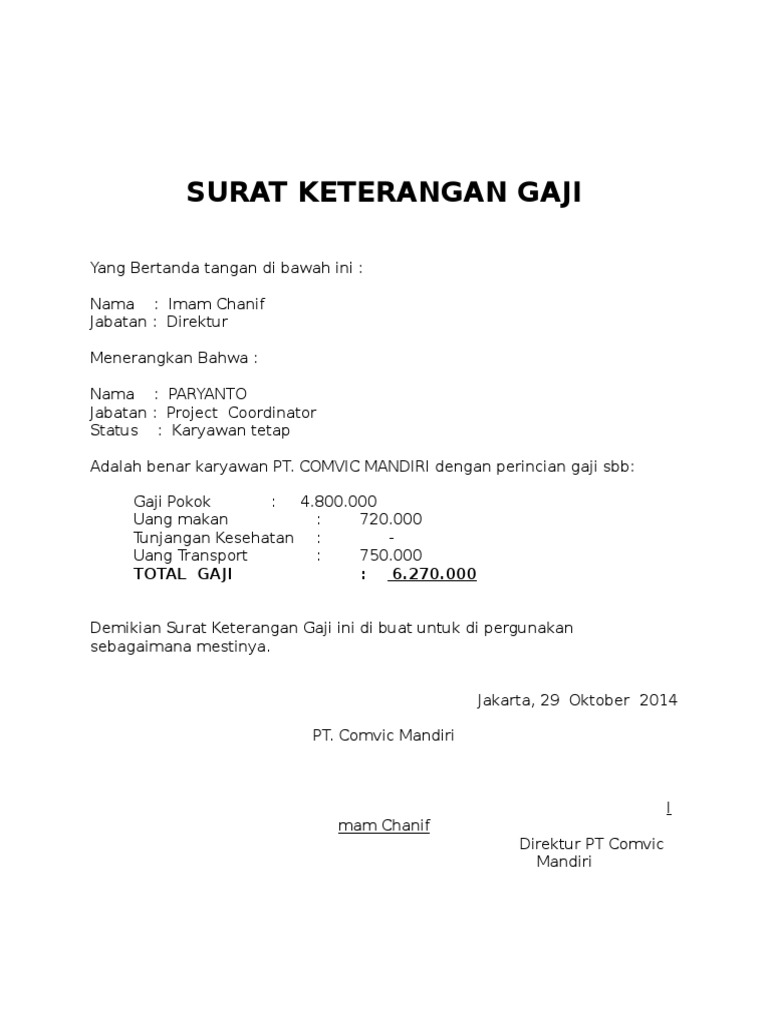 Seorang karyawan tentu membutuhkan contoh surat keterangan penghasilan atau gaji karyawan ini. Sedangkan surat keterangan penting berupa surat keterangan yang berisikan informasi tertentu. Slip gaji yang baik berisi rincian atau detail dari gaji karyawan tersebut. Orion furniture and property. Berbeda dengan gaji yang didapatkan oleh seorang karyawan lepas yang mungkin saja akan dipotong jika tidak masuk kerja walaupun dengan alasan yang bisa dipertanggung jawabkan. Surat keterangan sebagai karyawan surat keterangan sebagai mahasiswa ataupun surat keterangan yang menyatakan bahwa seseorang memiliki kedudukan di sebuah lembaga instansi merupakan contoh surat keterangan biasa.