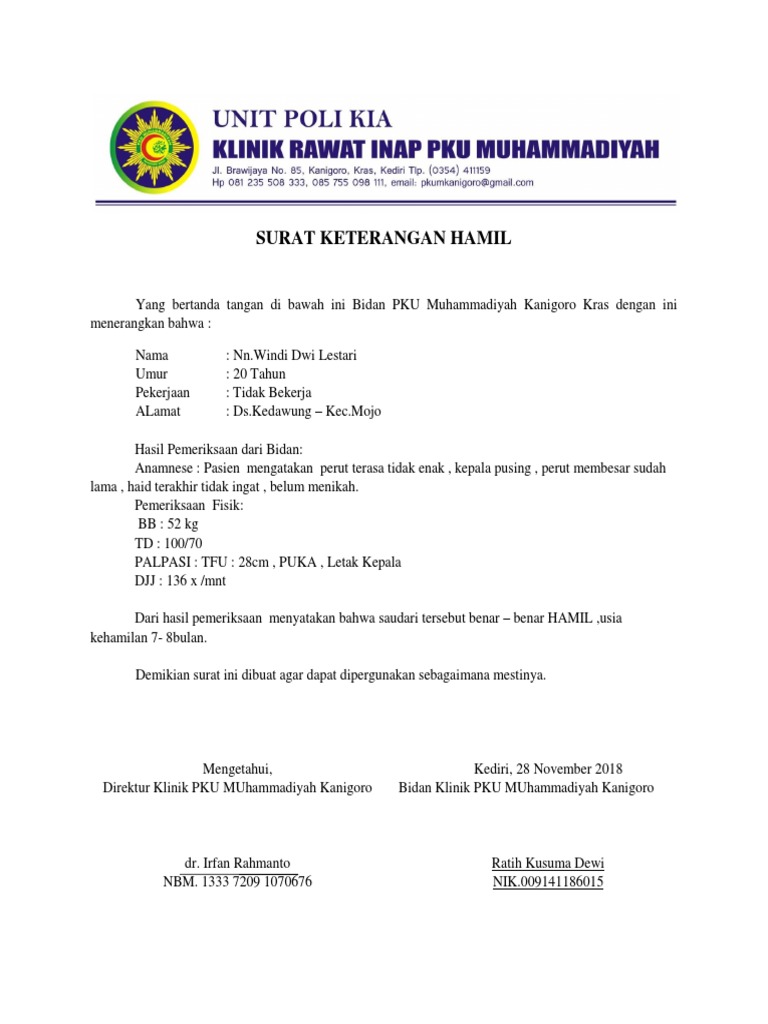 Contoh surat keterangan hamil. Pengambilan cuti sementara ini dipersiapkan untuk para perempuan agar bisa menyiapkan proses persalinan tanpa harus memikirkan beban pekerjaan. 0321 711045 jombang. 15 contoh surat dokter untuk berbagai keperluan dalam berbagai hal dan urusan surat keterangan dari dokter sangatlah diperlukan. Download contoh surat keterangan hamil. Contoh surat keterangan kerja surat keterangan kerja di gunakan oleh karyawan atau seseorang yang memiliki ikatan kerja untuk memberikan penjelasan atau informasi bahwasanya kita adalah sebagai pekerja dan sedang bekerja dengan ini kita akan mendapatkan sebuah konfirmasi baik terhadap orang yang bersangkutan dengan kita. Hal ini akan membuat mereka membutuhkan waktu untuk berhenti bekerja atau cuti sementara.