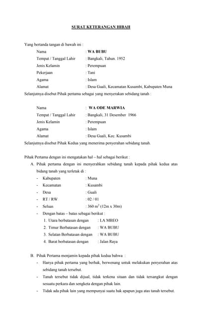 Nah berhubung tampilan di atas tidak rapih dan kami juga menon aktifkan fungsi copy paste pada blog ini maka kami sediakan contoh surat keterangan hibah tanah ini dalam format ms. Fb twitter wa line pinterest g linkedin hibah tanah keterangan hibah surat keterangan tanah bangunan tanah perusahaan tanah warisan. Contoh surat hibah versi tahun 2020 tiba saatnya untuk melihat bagaimana contoh penulisan surat hibah yang baik dan benar. Pada umumnya kebanyakan orang akan menulis surat hibah tanah doc ataupun dalam bentuk file microsoft word. Bukti dokumen seperti ini penting sebagai pengganti terhadap perjanjian jual beli tanah karena peralihan melalui hibah maka dokumen inilah sebagai bukti peralihannya. 1 surat hibah tanah.