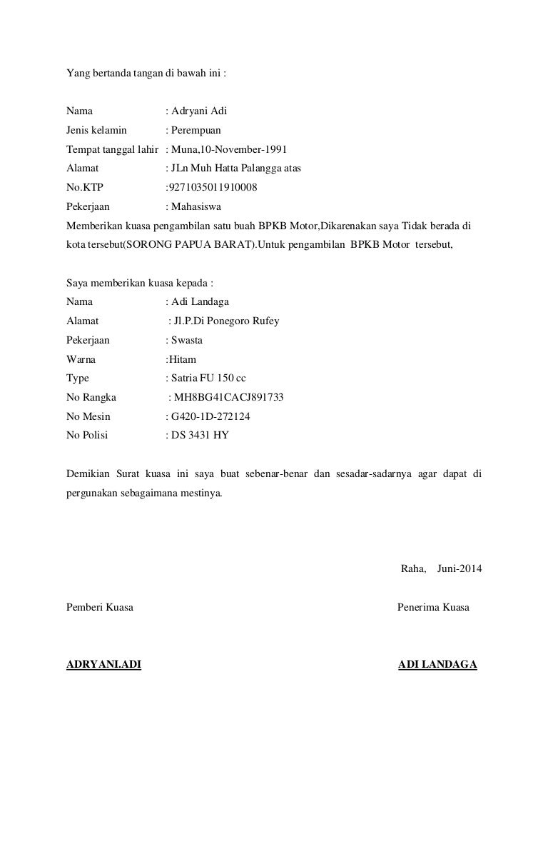 Contoh Surat Kuasa Pengambilan Bpkb Terbaru Onlines Id