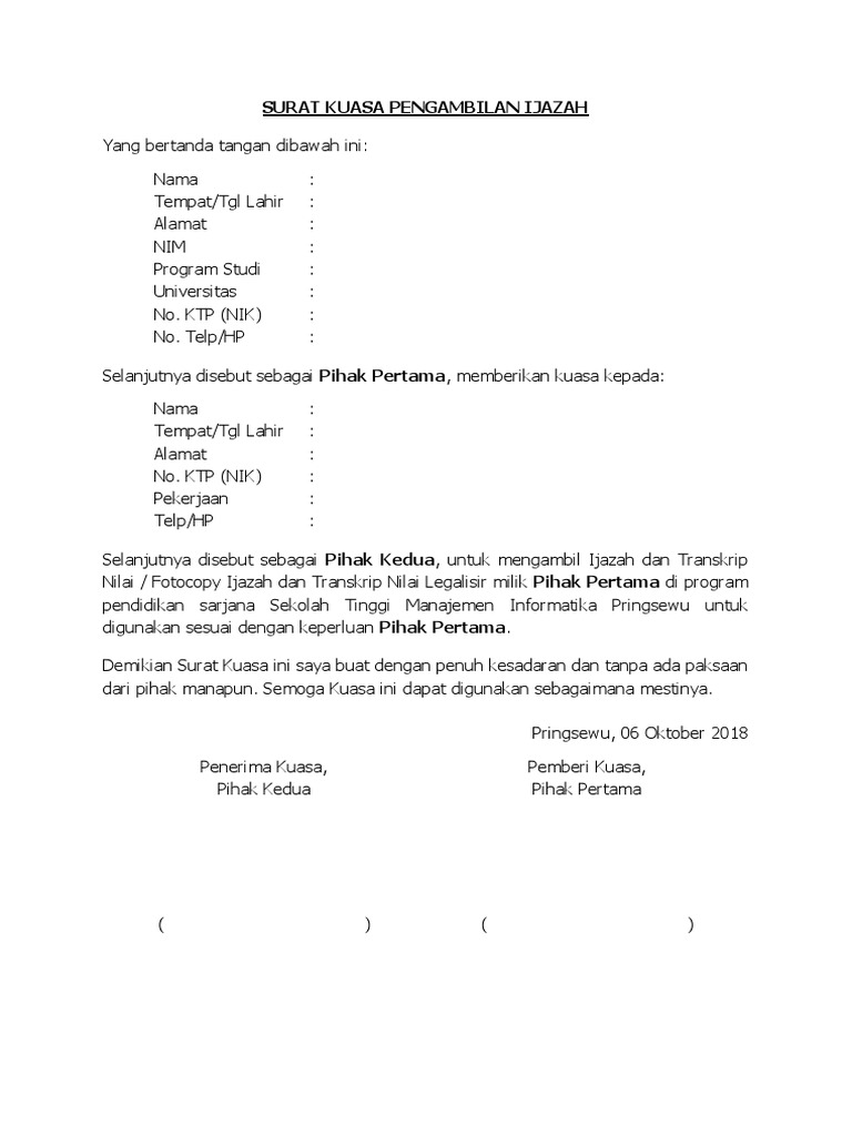 Contoh surat kuasa pengambilan ktp. 0123456789 tempattgi lahir. Selanjutnya disebut sebagai pihak pertama memberikan kuasa kepada. Surat kuasa saya yang bertanda tangan di bawah ini. Untuk membantu dan mewakili dalam pengambilan kartu tanda penduduk e ktp pihak pertama dengan nik 121 yang sudah selesai pengurusannya di kantor dispendukcapil kota surabaya dikarenakan pihak pertama saat ini sedang menempuh studi dan berdomisili di belitung. Namun sebelum ke inti dari topik bahasan akan saya bahas dulu sedikit tentang surat kuasa baik itu fungsinya maupun jenisnya. Bandung 17 agustus 1963 alamat.