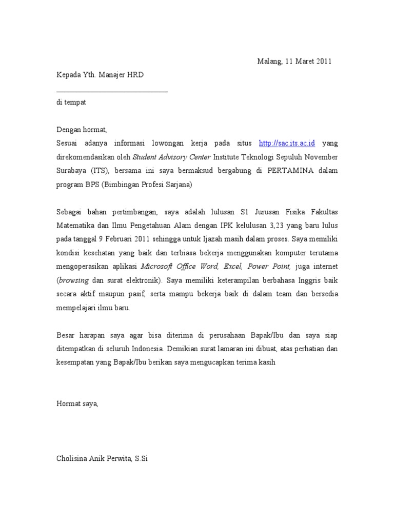 Sekar maju jl ahmad yani no. Jadi membuat surat lamaran dengan format dan tata bahasa yang baik dan benar adalah. Berikut contoh surat lamaran kerja untuk bursa kerja atau job fair untuk fresh graduatebagi sobat yang ingin melamar pekerjaan tapi belum tahu bagaimana cara membuat surat lamaran kerja yang akan sobat gunakan untuk melamar ke perusahaan yang diinginkan. Pada dasarnya tidak jauh berbeda hanya saja pada contoh surat lamaran kerja di bank ini di cantumkan nama bank tujuan tempat melamar kerja dan posisi yang dilamar. Semoga bisa bermanfaat bagi para pencari kerja dan pejuang job fair. Surat lamaran kerja adalah lembar paling depan yang akan dilihat oleh pihak recruitment atau hrd perusahaan.