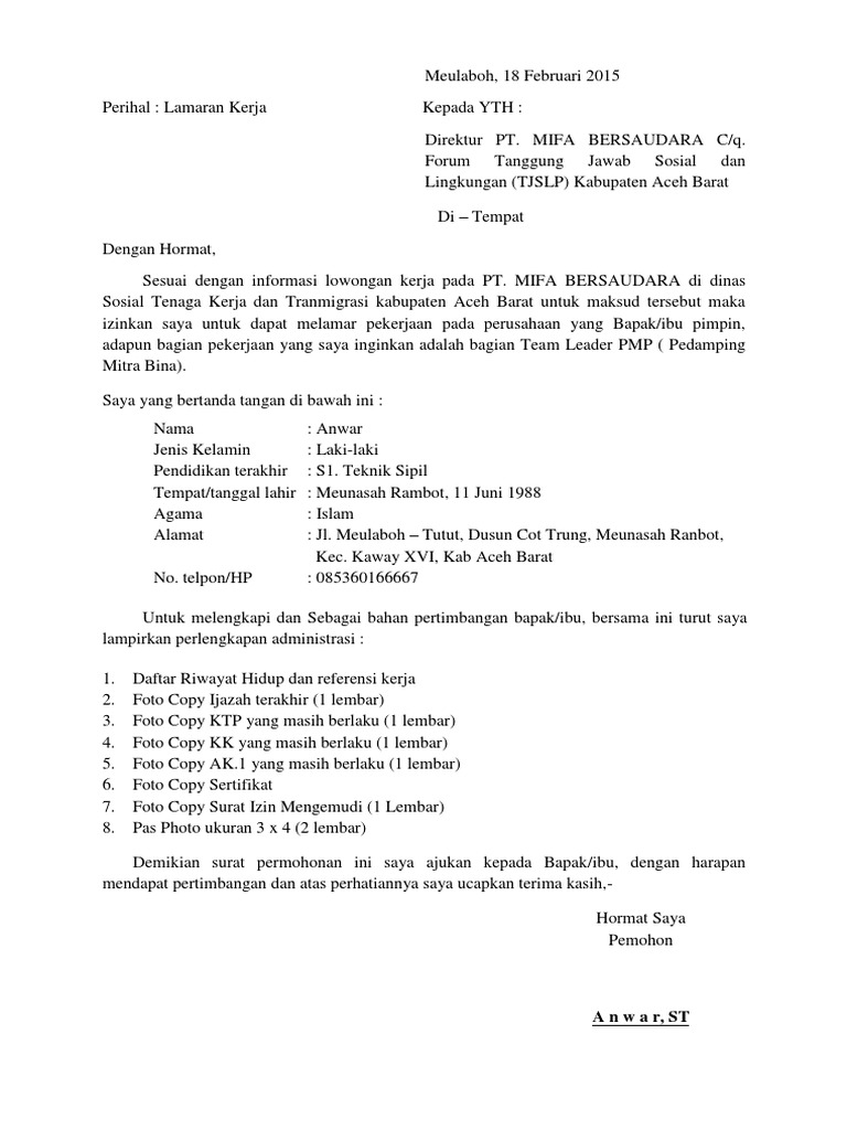 Contoh surat lamaran kerja umum untuk perusahaanptcv. Hrd pt pelita jaya.