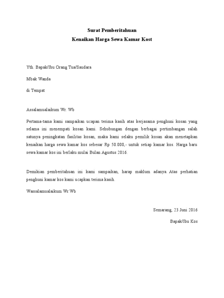 1 response to contoh surat pemberitahuan kenaikan harga barang cah mbakalan 7 april 2015 at 1743 thanks gantelah memposting contoh surat surat pemberitahuan kenaikan harga barangini sangat membantu saya gan. Contoh surat pemberitahuan secara resmi untuk perusahaan orang tua siswa. Tentunya format pembuatannyapun harus diperhatikan dengan baik sehingga dapat membuatnya dengan benar. Mataram 17 januari 2018. Contoh surat pemberitahuan kenaikan harga barang. Contoh surat pemberitahuan kenaikan harga barang kepada pelanggan nah itulah 8 contoh surat pemberitahuan yang bisa menjadi rujukan anda dalam menulis suratcontoh surat pemberitahuan kenaikan harga.