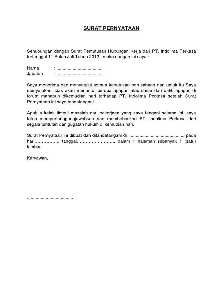 Surat pemberhentian kerja ini biasanya merupakan teguran terakhir jika alasan berupa pelanggaran. Bahkan tentu anda sudah pernah membuat serta menggunakan surat ini pada karyawan anda. Beberapa alasan paling umum untuk pemecatan adalah bagi karyawan untuk diketahui telah melakukan kesalahan fatal atau ancaman yang dapat mengancam nama baik atau masa depan perusahaan. Kirimkan ini lewat email blogthis. Tentu saja karyawan yang sudah bekerja dengan baik dan menunjukkan loyalitas pada perusahaan tentunya tidak mengharapkan mendapat surat pemutusan hubungan kerja. Terkadang kita mendengar atau melihat berita ada perusahaan besar yang melakukan phk secara besar besaran terhadap ribuan.