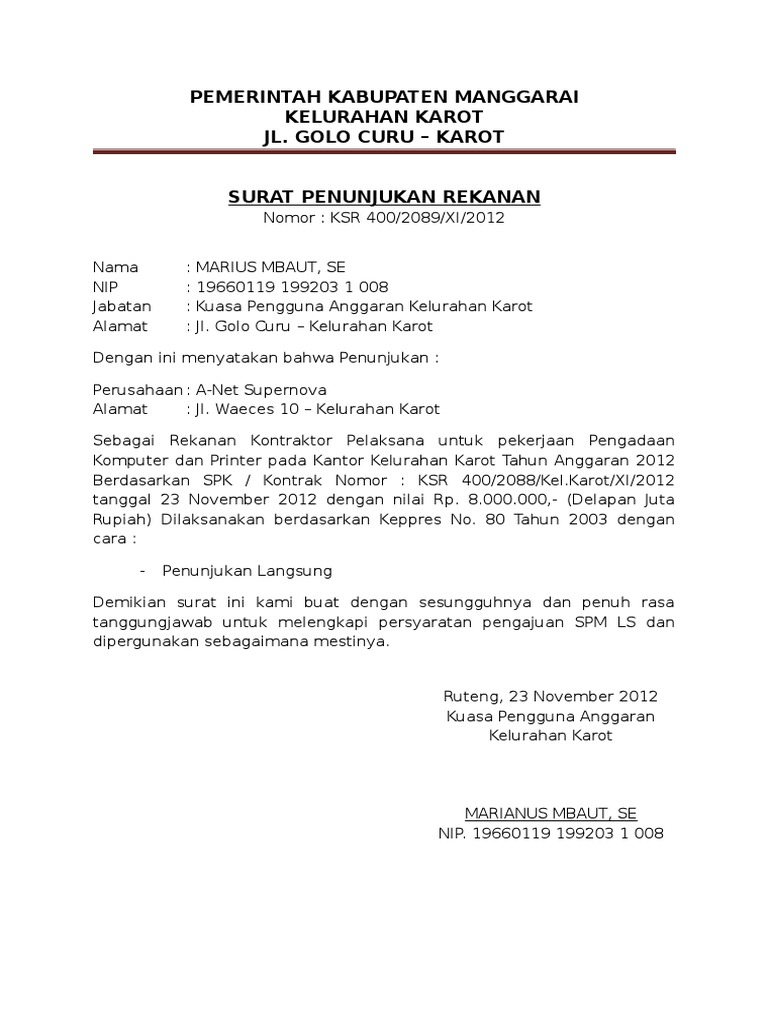 Hukum menjual barang yang disewakan selama masa sewa download surat surat. Itu tadi penjelasan singkat beserta contoh surat penunjukan yang dapat kami berikan pada artikel kali ini. Ketika anda membuat surat ini anda harus memperhatikan tentang kaidah atau aturan aturan di dalam pembuatan surat resmi seperti dengan mencantumkan kop surat tanggal dan lain sebagainya seperti halnya ketika anda membuat contoh surat pemberitahuan dinas sekolah kegiatan kampus dan kegiatan rt paling lengkap atau juga contoh surat pengunduran diri organisasi. Selengkapnya silahkan download contoh surat penunjukan pada link berikut ini. Surat keputusan diperlukan bilamana seorang pemimpin atau atasan membuat keputusan di suatu pihak atau kelompok. Contoh surat penunjukan kerja.