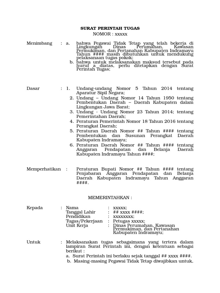 Contoh surat perintah tugas dinas. Contoh surat tugas surat tugas atau yang disebut surat perintah jalan merupakan surat yang berisi penugasan dari atasan atau pejabat yang berwenang kepada bawahan atau pejabat lain untuk melakukan tugas kedinasan. Tugas kerja tersebut bisa berupa study banding audit ke perusahaan cabang rapat kerja nasional maupun pekerjaan pekerjaan lain yang dilakukan di luar kota tidak di lingkungan kantor sendiri. Untuk lebih jelasnya anda bisa melihat contoh surat perintah tugas dinas di bawah ini. Kali ini yang akan menjadi topik pembahasan kita adalah mengenai contoh surat tugas lengkap terbarulalu apa itu surat tugas dan bagaimana bentuk dari surat tugas itu sendiri. Selamat pagi sobat belajar office dan selamat tahun baru 2017. Kembali lagi kita akan membahas seputar dunia surat menyurat.