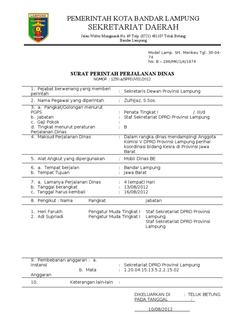 Download Contoh Sppd Surat Perintah Perjalanan Dinas