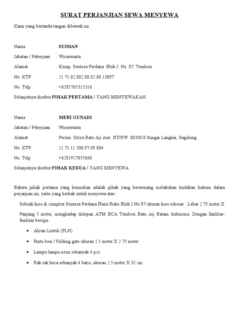 Amir komarudin nomer ktp. Contoh surat perjanjian kontrak rumah atau bisa disebut juga contoh surat perjanjian sewa menyewa rumah. Contoh surat perjanjian kontrak rumah sederhana. Berikut kami berikan beberapa contoh surat yang mungkin bisa dimanfaatkan sebagaimana mestinya. Dengan membuat surat perjanjian kontrak rumah dan ruko segala resiko terburuk itupun dapat diminimalisirkan. Demikian surat perjanjian kontrak kerja ini dibuat dengan rangkap 2 dua bermaterai dan ditandatangani untuk masing masing pihak dan merupakan surat perjanjian yang mengikat dan sah di mata hukum.