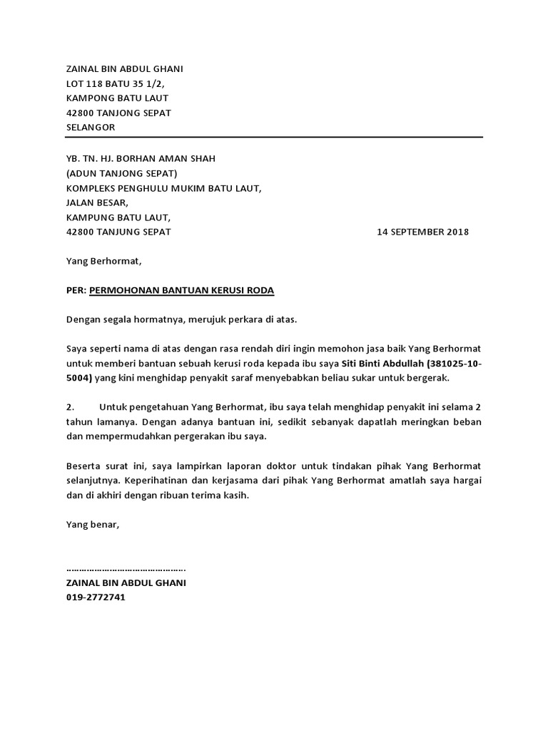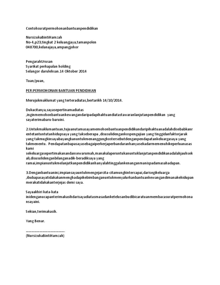 Contoh surat permohonan bantuan. Contoh surat permohonan bantuan kemaskini terbaru. Surat permohonan bantuan adalah jenis surat memohon bantuan samada kewanganpendidikandana perniagaanrumah dan biasiswa dari sesebuah organisasiagensi dan individu. Pada waktu sekarang ini yang akan kami bahas yakni tentang contoh surat permohonan bantuan. Jika masih penasaran berikut contoh surat permohonan bantuan untuk bahan pembelajaran daftar isi artikel1. Surat permohonan bantuan masih pada waktu yang sama admin masih membahas ulasan artikel seputar dunia surat. Karena surat ini termasuk surat resmi maka harus memiliki kop surat kepala surat isi surat pentup surat hingga beberapa tanda tangan pihak2 yang membuat dan mengetahui surat ini.