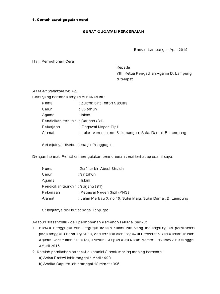 Format gambar contoh surat gugatan cerai istri kepada suami non muslim terbaik 2019. Jika anda berniat untuk mengajukan gugatan lain seperti hak asuh anak secara bersama sama dengan surat gugatan silahkan buka contoh surat gugat cerai disertai gugat hak asuh anak. Contoh surat gugatan cerai istri kepada suami non muslim have a graphic associated with the othercontoh surat gugatan cerai istri kepada suami non muslim in addition it will include a picture of a sort that may be seen in the gallery of contoh surat gugatan cerai istri kepada suami non muslim. Surat permohonan perceraian merupakan syarat administrasi atau prosedur perceraian secara hukum negara. Contoh surat permohonan cerai. Contoh format surat izin cerai dari atasan bagi pns docx salah satu syarat administrasi bagi pegawai negeri sipil pns yang ingin mengajukan gugatan perceraian adalah surat izin cerai dari atasan.