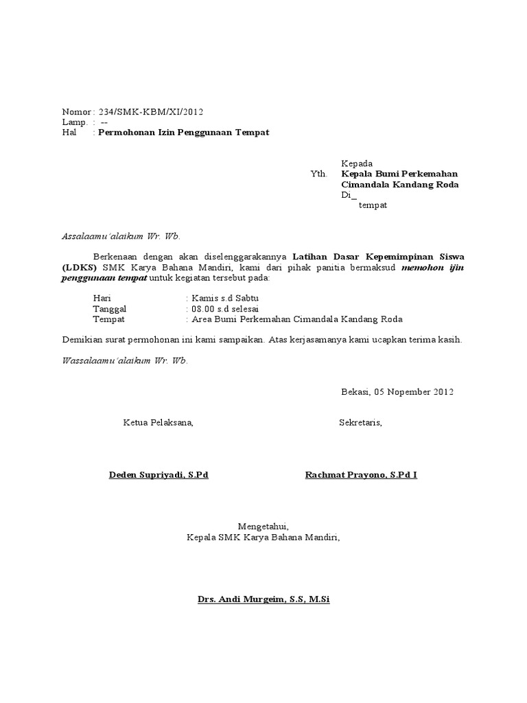15 contoh surat permohonan izin untuk berbagai kepentingan walaupun penggunaan surat belakagan ini sudah semakin menurun namun masih ada beberapa contoh surat yang tetap digunakan hingga sekarang. Contoh surat izin peminjaman tempat nomor. Madiun 5 agustus 2016. Contoh surat permohonan izin tempat latihan pencak silat. Dalam meminjam suatu tempat tetap harus menggunakan surat peminjaman tempat sebagai dasar sekaligus bentuk pertanggung jawaban apabila terjadi sesuatu dikemudian hari. Surat peminjaman tempat merupakan surat resmi yang diperuntukkan meminjam tempat tertentu untuk melakukan kegiatan tertentu.